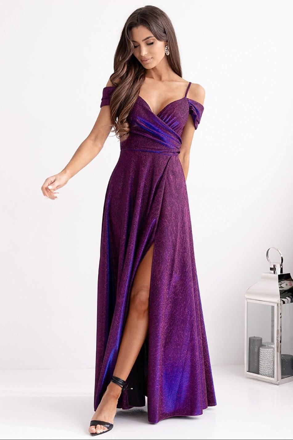 Robe de soirée paillette longue fendue